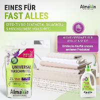 AlmaWin universal detergent with a wonderfully fresh lavender scent is suitable for all white and colored textiles, except for wool and silk. Please follow the care and cleaning instructions of the textile manufacturer. Tip: For bright white laundry, add AlmaWin oxygen bleach.