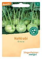 Medium-early white kohlrabi for outdoor cultivation in spring, summer and fall. Large, flat-round, tender bulb with a high stalk and upright, strong foliage, even in summer. It has good cold resistance. "TIP": Loves nutrient-rich soil and a good, regular water supply.