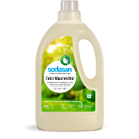 High-yield detergent for deep cleanliness and bright colors. The innovative formula with organic plant soap is suitable for washing temperatures between 30°C and 95°C, except for wool and silk. You can pre-treat particularly stubborn stains with sodasan stain gel or sodasan gall soap. For very heavily soiled laundry, we recommend adding sodasan Bleach & Stain Remover.-----Dosage per wash load of 4 - 5 kg of laundry with medium water hardness:Lightly soiled laundry: 55 mlNormally soiled laundry: 75 mlHeavily soiled laundry: 110 mlFor a minimum load of 2.5 kg, we recommend - 25 ml. For a maximum load of 6-7 kg + 30 ml and for hand washing 40 ml in 10 l of water. Yield for a load of 4 - 5 kg of laundry:Lightly soiled laundry: 27 wash loads/ 122 kg of laundryNormally soiled laundry: 20 wash loads/ 90 kg of laundryHeavily soiled laundry: 14 wash loads/ 61 kg of laundryInformation on environmentally friendly washing:Avoid underfilling the washing machine. Dose according to soiling and water hardness range.Use the lowest recommended washing temperature.Reduce packaging waste and buy large containers. For medium or hard water, we recommend adding sodasan softener. This reduces the amount of detergent used and allows the detergent to develop its full power.
