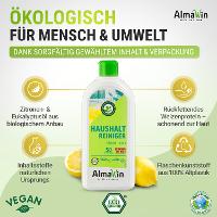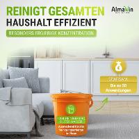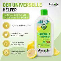 1 Esslöffel (10 ml) auf 5 l Wasser. Der AlmaWin Haushalt Reiniger ist ein Universalreiniger für alle im Haushalt anfallenden Reinigungsaufgaben. Er eignet sich besonders zur Reinigung wasserfester Oberflächen wie Fliesen, Türen, Kunststoffe, Fußböden, lackierte Flächen usw.