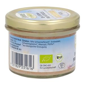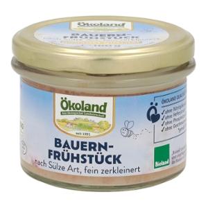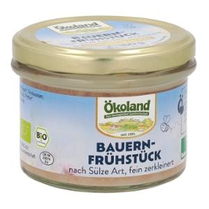 Ökoland Bauernfrühstück is a special, lean sausage specialty made from high-quality, pure organic pork. The coarse, meaty structure and the selected spices ensure a good and hearty taste. The sausage is firm to cut with a slight jus formation, making it particularly juicy. Easy to remove in a practical cylinder jar.