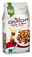 Schoko Knuspermüsli* [HAFERvollkornflocken* 38%, Rübenzucker*, DINKELvollkornflocken*¹11%, ungehärtetes Palmfett*, Reissirup*, Zartbitterkuvertüre* 4% (Kakaomasse*, Vollrohrzucker*, Rohrohrzucker*, Kakaobutter*, Emulgator: Sonnenblumen-Lecithine*), HAFERvollkornschrot* 4%, stark entölter Kakao* 2%, Meersalz], HAFERvollkornflocken* 15%, Früchte* gefriergetrocknet 3% in veränderlichen Gewichtsanteilen (Erdbeerstücke*, schwarze Johannisbeeren*), Zartbitterschokolade* 2% (Kakaomasse*, Rohrohrzucker*, Kakaobutter*, Emulgator Sonnenblumen-Lecithine*).Energie | Fett | gesättigte Fettsäuren | Kohlenhydrate | Zucker | Ballaststoffe | Eiweiss | Salz |