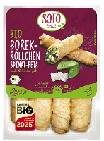 The new SOTO organic spinach and feta börek rolls impress with their combination of wafer-thin crispy dough and delicious filling. Inspired by the popular Turkish specialty, fine spinach leaves, real feta, nutty sesame seeds and a touch of roasted sesame oil ensure particularly authentic moments of indulgence.