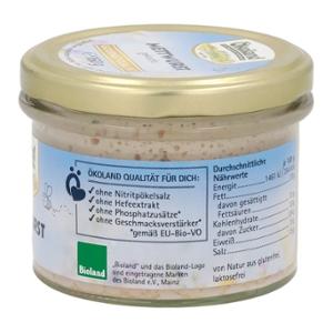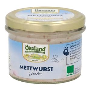 Ökoland Mettwurst is a traditional sausage specialty made from high-quality organic pork in gourmet quality. The fine texture and selected spices ensure the unmistakable taste, just like grandma and grandpa used to make. Easy to remove in a practical cylinder jar.