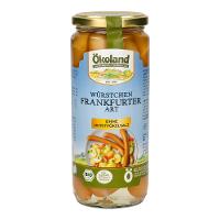 The high-quality organic meat and tasty organic spices are processed according to strict quality guidelines. We do not use additives such as nitrite curing salt or phosphates out of conviction. For every jar of Frankfurter-style sausages sold, Ökoland donates 10 cents to SOS Children's Villages maternity centers.gluten-free, lactose-free.