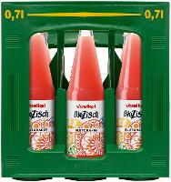 Natürliches Mineralwasser, Blutorangensaft* 7%, Zitronensaft*, Rohrohrzucker*, Blutorangenfruchtmark* 1 %, Heidelbeersaft*, Traubensaftkonzentrat*, Orangenöl*, Quellkohlensäure.| Energie | Fett | gesättigte Fettsäuren | Kohlenhydrate | Zucker | Ballaststoffe | Eiweiss | Salz |
