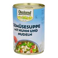 A nice hearty vegetable soup with chicken is the ideal dish when you need to cook quickly. The various vegetables, noodles and fine chicken make the popular Ökoland vegetable soup a wholesome and delicious meal. All the ingredients are specially selected and so finely balanced that they give our vegetable soup its delicate, unmistakable taste.