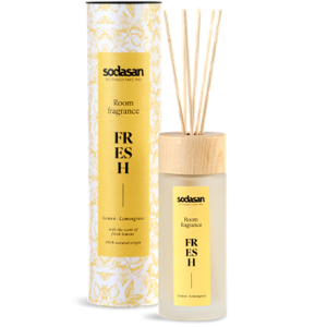 Decorative organic room fragrance. Like the scent of freshly squeezed juicy lemons, this composition ennobles the tangy green note of lemongrass and litsea cubeba. A clear, pure unity full of energy unfolds - vitalizing and positive.95% of all ingredients are from organic cultivation.Beech wood cap and sticks are from sustainable forestry.Eco-tip: Reduce packaging waste and buy refills.
