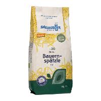 The best Demeter spelt is used for the light-colored spelt farmer's spaetzle. In our own mill, the grain is ground in several stages to a medium-light flour that still contains valuable components of the grain. The flour is then processed into spaetzle. Thanks to the spelt, these spaetzle taste delicately nutty and are suitable for traditional Swabian dishes such as cheese spaetzle or lentils with spaetzle. They are also delicious with dark sauces, cream or mushroom sauces. They are also delicious in stews and casseroles. The pasta packaging is made from 100% renewable wood. They can be completely collected in waste paper and are 100% recyclable. Through a long-term partnership with the Bergwaldprojekt e.V., Spielberger Mühle finances the planting of trees every year as well as the maintenance and preservation of the existing forest. The latter enables the forest to rejuvenate itself naturally - i.e. new trees grow and the forest thrives. This closes the paper cycle by offsetting paper consumption for packaging and giving something back to nature.spelt tastes delicately nutty. With the beginning of the organic movement, spelt was rediscovered as an unadulterated original grain. Until the Middle Ages, it was considered the most important bread grain. It was only with the intensification of agriculture and the increased use of artificial fertilizers that the grain fell into oblivion. There was a very simple reason for this: unlike wheat, spelt hardly reacts to the application of nitrogen fertilizer with an increase in yield. In organic farming, however, the positive properties of the grain are appreciated. In addition to its fine nutty taste and better digestibility, spelt is characterized by the fact that it also grows well in areas with higher rainfall and at higher altitudes.